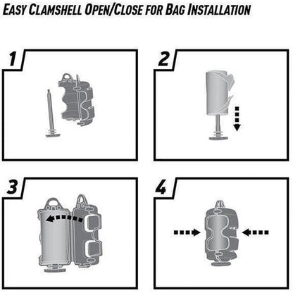 Making ease of an inglorious task, the Pack-A-Poo Bag Dispenser features a unique revolving core allowing the user to quickly roll up excess bags they have pulled out. It attaches easily to any leash or backpack with the included #2 S-Biner, or can be mounted flush simply by sliding the leash into the two integrated clips. The dispenser comes pre-loaded with 15 compostable bags, so it's friendly for Fido and for the earth. Its clamshell design makes it quick and easy to reload with standard size bag rolls.