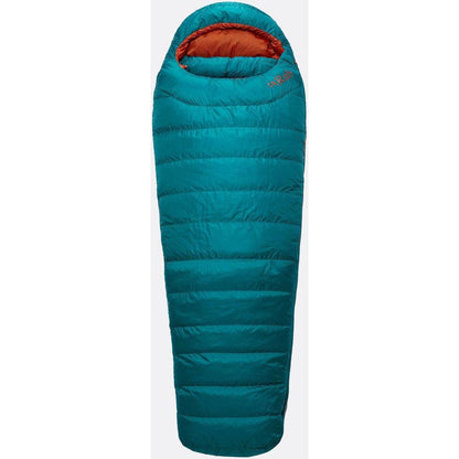 The generous mummy fit with wide foot box provide a spacious feel for an easy night's sleep, and the close-fitting neck baffle keeps the heat in when the temperature drops. It has a ¾ length main zip with a down filled baffle to keep out the draught.