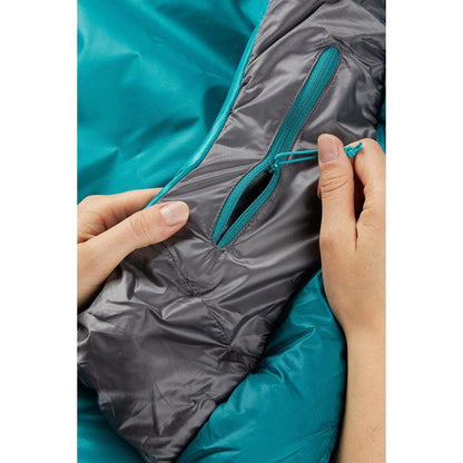 The Solar Eco has an adjustable hood which can be cinched in snug around the face to shut out the chill and an adjustable neck baffle to stop the heat escaping. The ¾ length zip has an additional baffle along its length that acts as an effective draught excluder with an anti-snag zip guard. The wide mummy fit offers space to find your most comfortable sleeping position, with room for extra layers should night-time temperatures plummet. The women's specific version is slightly shorter in length, narrower at the shoulders, and wider at the hips than the regular fit bag for improved efficiency.