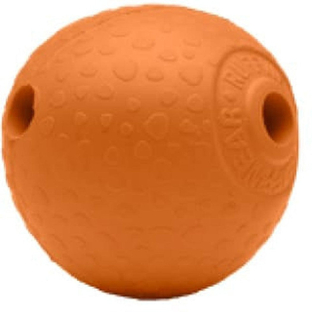 The Huckama moves like a critter and is fun to chase. This durable, interactive toy keeps dogs engaged with its erratic bounce and roll. The hollow design accepts food for treat rewards and whistles when hurled through the air. Made from natural latex rubber, a renewable resource.