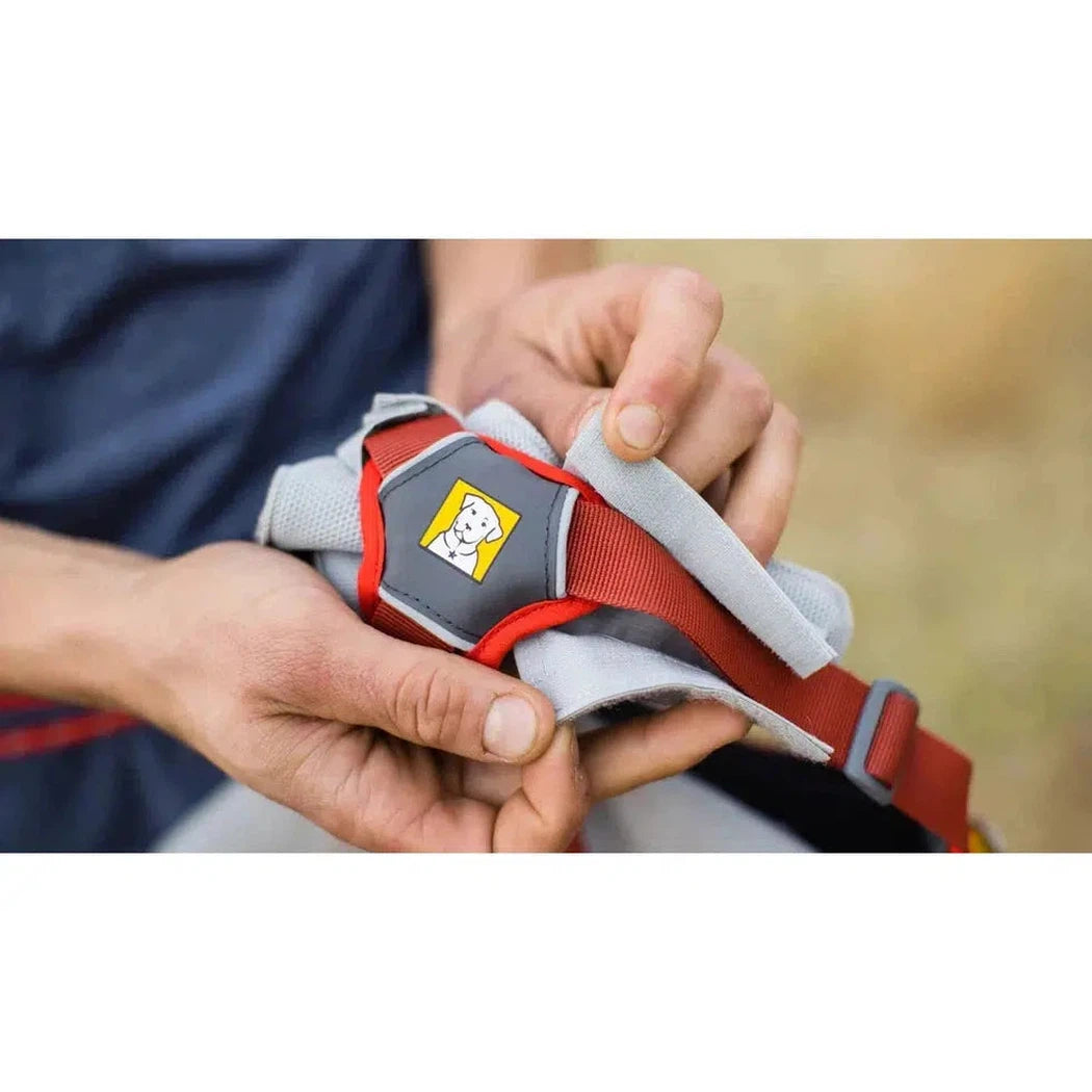 This three-layer chest panel features Ruffwear's Swamp Cooler™ Tech that uses evaporative cooling to efficiently disperse heat from the dog’s core when exploring in warm temperatures. To activate, wet the Swamp Cooler Core with water, use the hook-and-loop sleeves to attach it to the chest and belly straps of the pack or harness, then hit the trail!