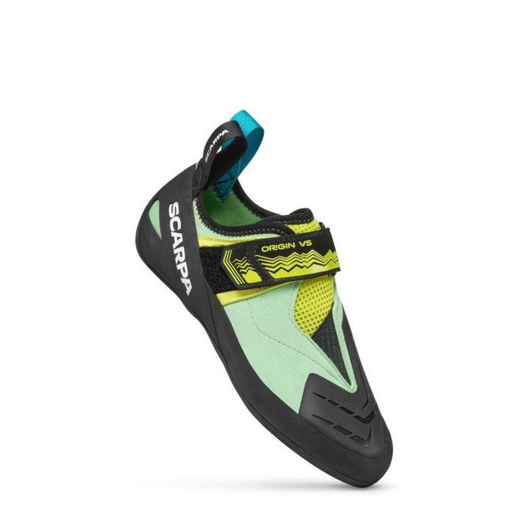 The new Origin VS is a comfortable climbing shoe designed for modern indoor bouldering and sport climbing. A dual ply microfiber upper features a comfortable, padded tongue and oversized Velcro strap for secure closure. A massive rubber toe cap, full rubber heel cover and, and a super sticky S72 outsole further enhanced its capabilities for grabbing in steep terrain and smearing on large volumes. The Origin VS was born to boulder!