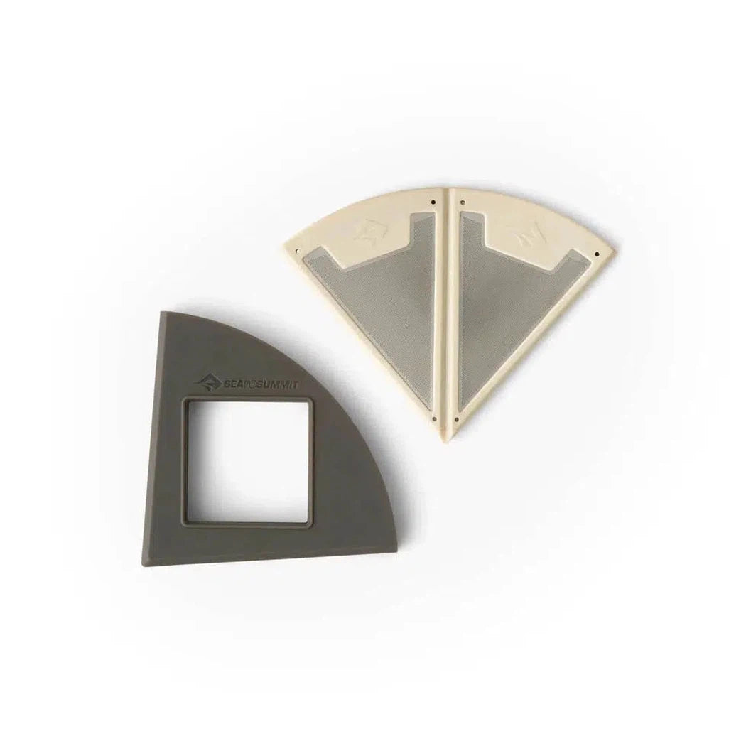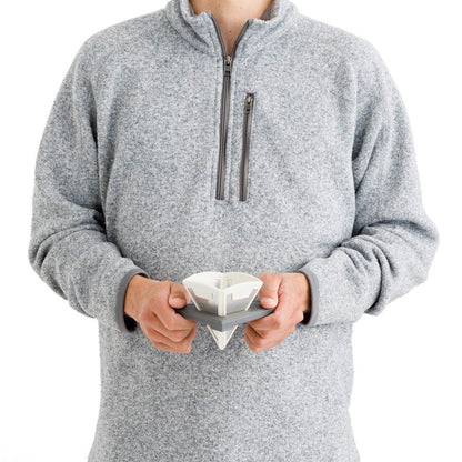 The Frontier Ultralight Collapsible Pour Over folds flat for storage in its polypropylene mount base, then pops out when needed to make a perfect pour-over brew. The easy-to-clean stainless steel mesh filter is sized just right for one serving (approx. 30g) of ground coffee and formed to hold the grounds but filter the coffee oils for a rich, satisfying cup of coffee. The mount base fits most mugs and wide-mouth bottle rims, and the EU food-grade silicone rubber and stainless steel filter unit slides inside the base for easy transport. It even stows nicely in a Frontier Collapsible Kettle.
