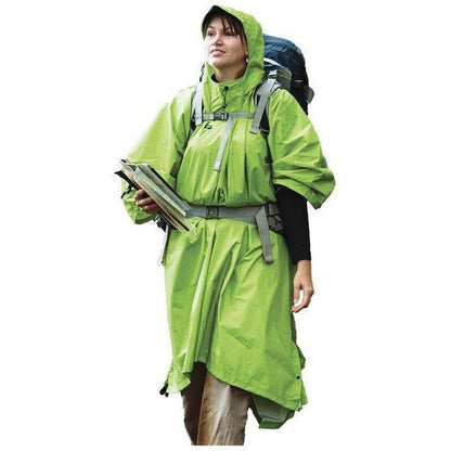 The Nylon Tarp-Poncho features a seam taped hood with 3-panel hood construction and a wide brim. Made of lightweight and durable 70D Nylon with fully taped seams it will keep you dry in a good torrential downpour. When not in use as a poncho, it can double-duty as a tarp shelter. It comes neatly packaged in a stuff sack for easy packing.