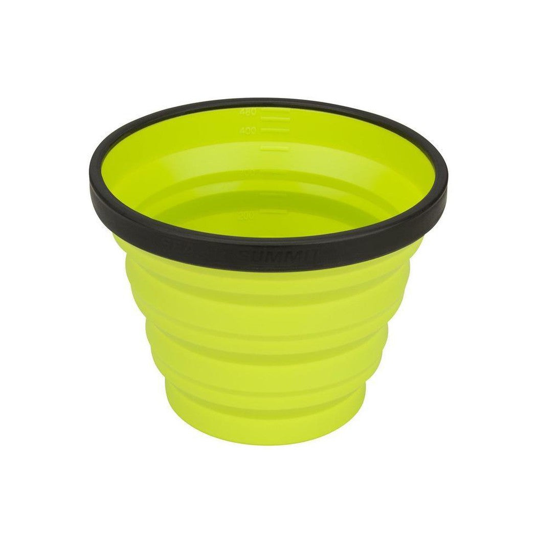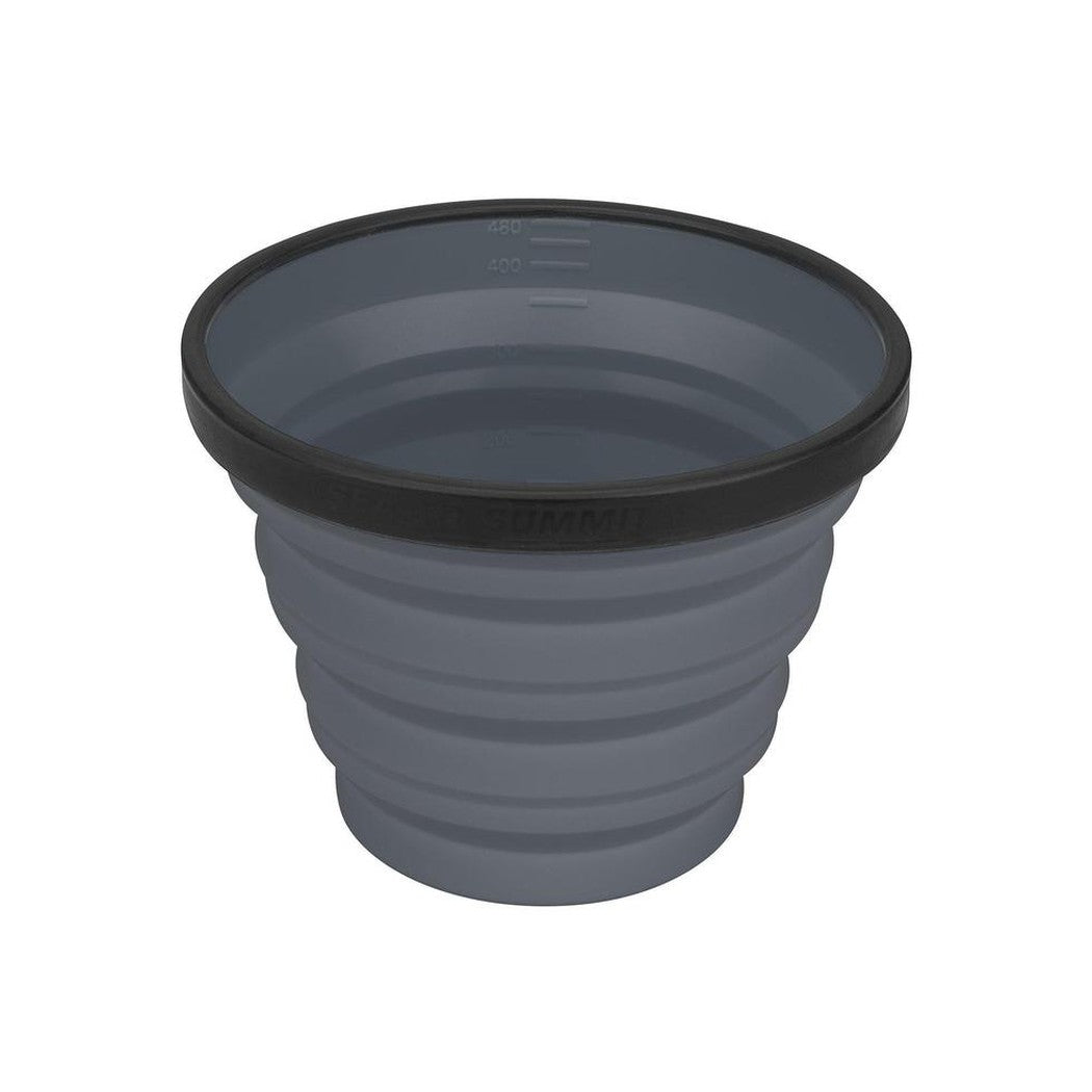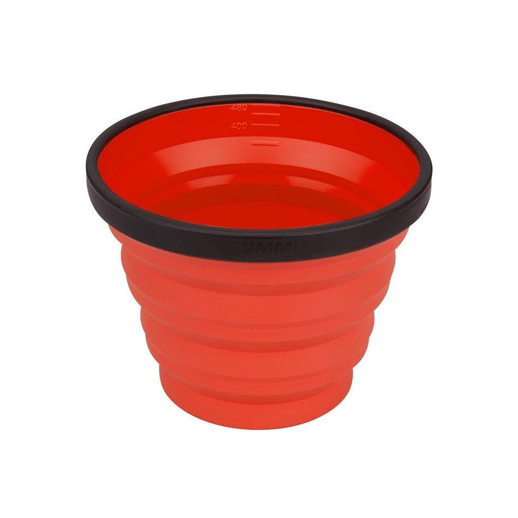 The X-Mug™ is a collapsible mug that is also calibrated as a measuring cup. The flexible silicone sides collapse making this a small compact disc sized dinnerware piece that nests neatly with other X-Series dinnerware and X-Pots.