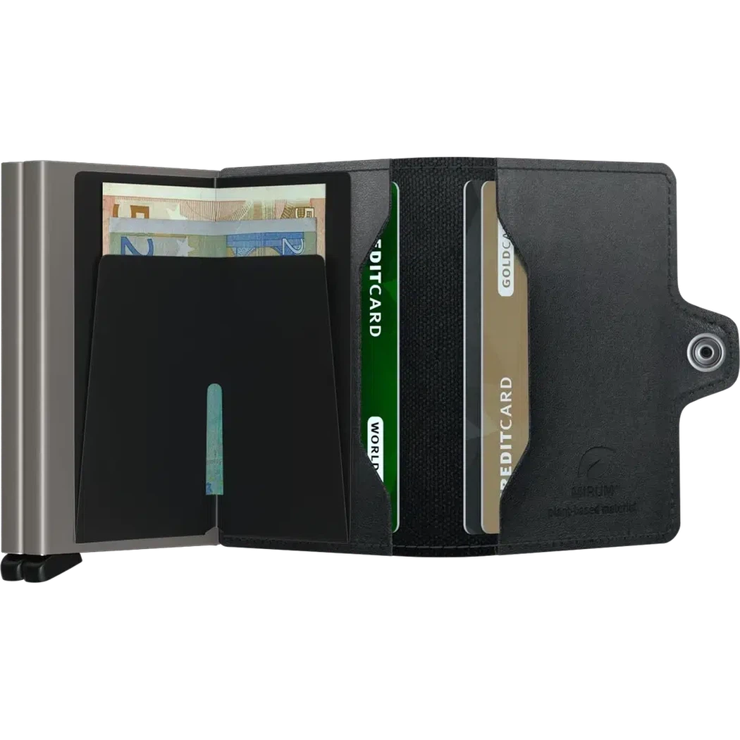With two Cardprotectors to hold double the content, the Twinwallet carries up to 16 cards, banknotes and receipts, but remains compact in size. Together with its sturdy closure and exterior, to hold extra cards, banknotes and receipts, the Twinwallet holds much but remains compact in size.