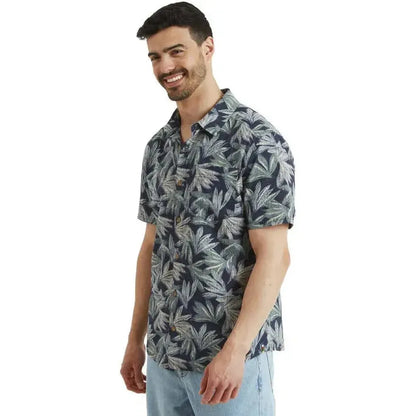 A modern classic, the Havai Short Sleeve Shirt makes a statement. Inspired by the Nepali word for breeze, this fully recycled shirt is ideal for enjoying a balmy onshore wind, or delighting in the fresh mountain air. Blending repurposed, recycled cotton with recycled polyester, the fabric is both breathable and moisture wicking. Cut with forward set shoulder seams and a pleated back yoke for comfort and mobility, the shirt is perfect for exploring the outdoors. Sporting an eye-catching floral print, finished with faux wood buttons and a single chest pocket, the Havai Short Sleeve Shirt evokes long hazy days and warm lazy nights.