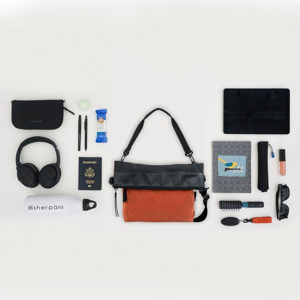 Two straps. Two attachment points. Eight ways to wear. The Vale is a fold-over crossbody or shoulder bag that adapts perfectly to your needs. Heading to the local farmers market? Fold it over for quick, relaxed outings. Walking along Paris's famed Seine River? Expand it to fit larger essentials-like a sweater, a bottle of wine, or both. (Yes, we consider wine an essential.) Made from water-resistant fabric and built with Sherpani anti-theft tech, the Vale is equal parts style and innovative functionality.