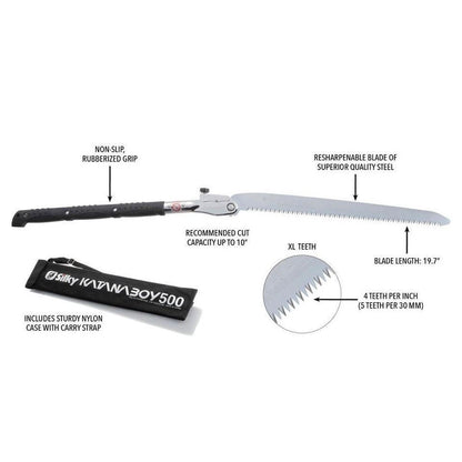 The non-slip, two-handed, rubberized cushioned handle provides a sure and comfortable grip even in the most difficult operating conditions. Suitable for serious tasks like cutting large timber and tree trunks. Exceptional design, strength, balance and superior finish quality. Comes with a sturdy nylon shoulder bag with Velcro fastening and a pocket for replacement blades. Made in Japan.