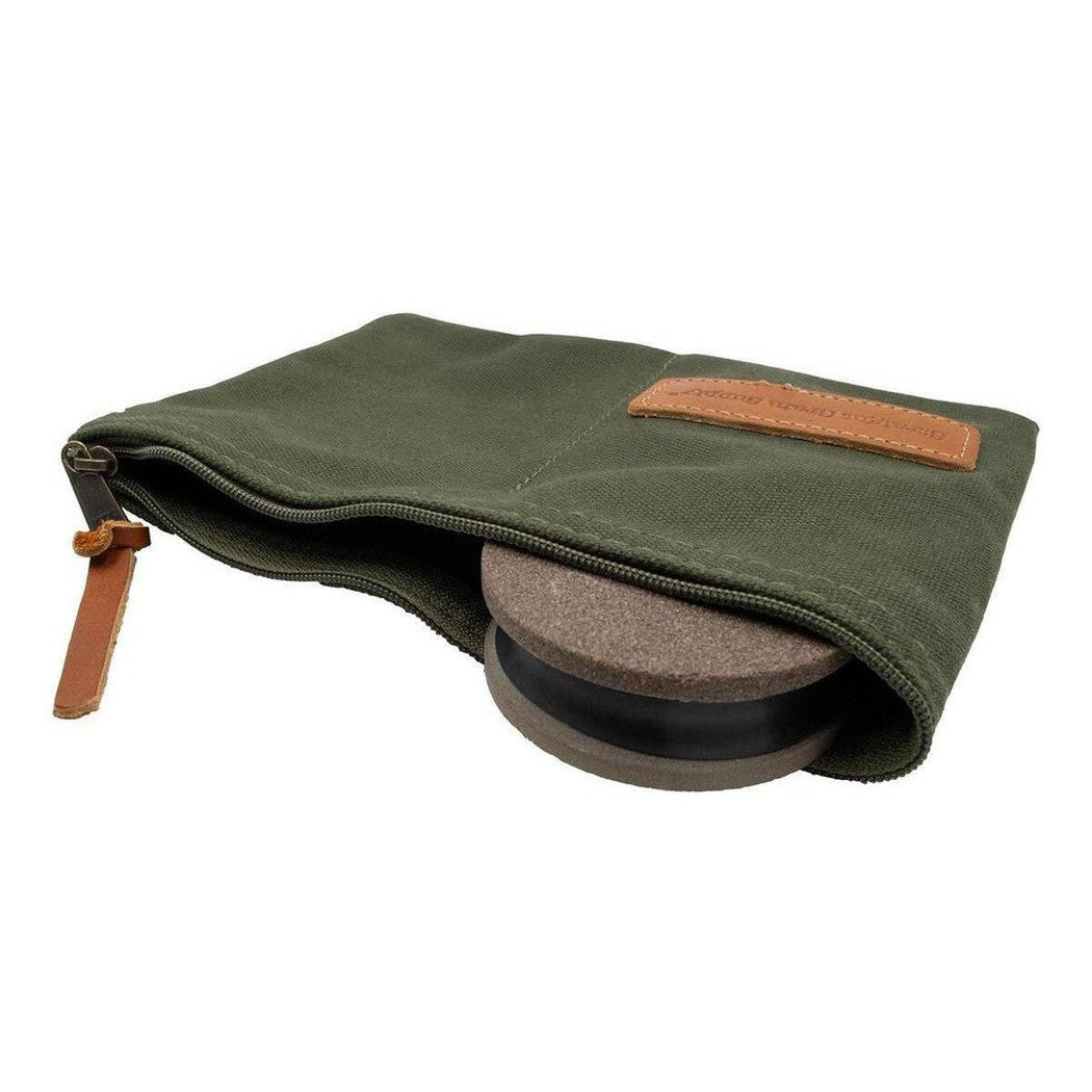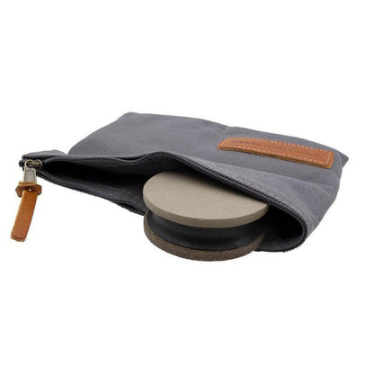 To be efficient, you have to be organized. This mindset helped create the puck pouch. Utilizing a split pocket design, the pouch is purpose built to hold one or more round sharpening stones, or a variety of other maintenance items. If you don’t need the pouch to keep your stone at the ready, you can easily convert it to organize small electronics or other everyday carry items. Each pouch is handcrafted in the U.S.A. using 18oz. duck canvas, durable YKK zippers, and a leather pull tab.