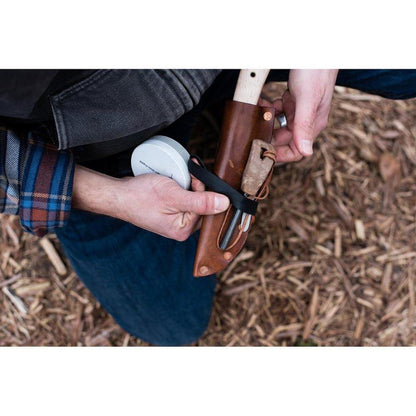 Included with each sharpening stone is an American made EDPM (Ethylene Propylene Diene Monomer) rubber band, which provides additional grip when manipulating the stone. The band is removable and can be used for a variety of outdoor or everyday carry applications.
