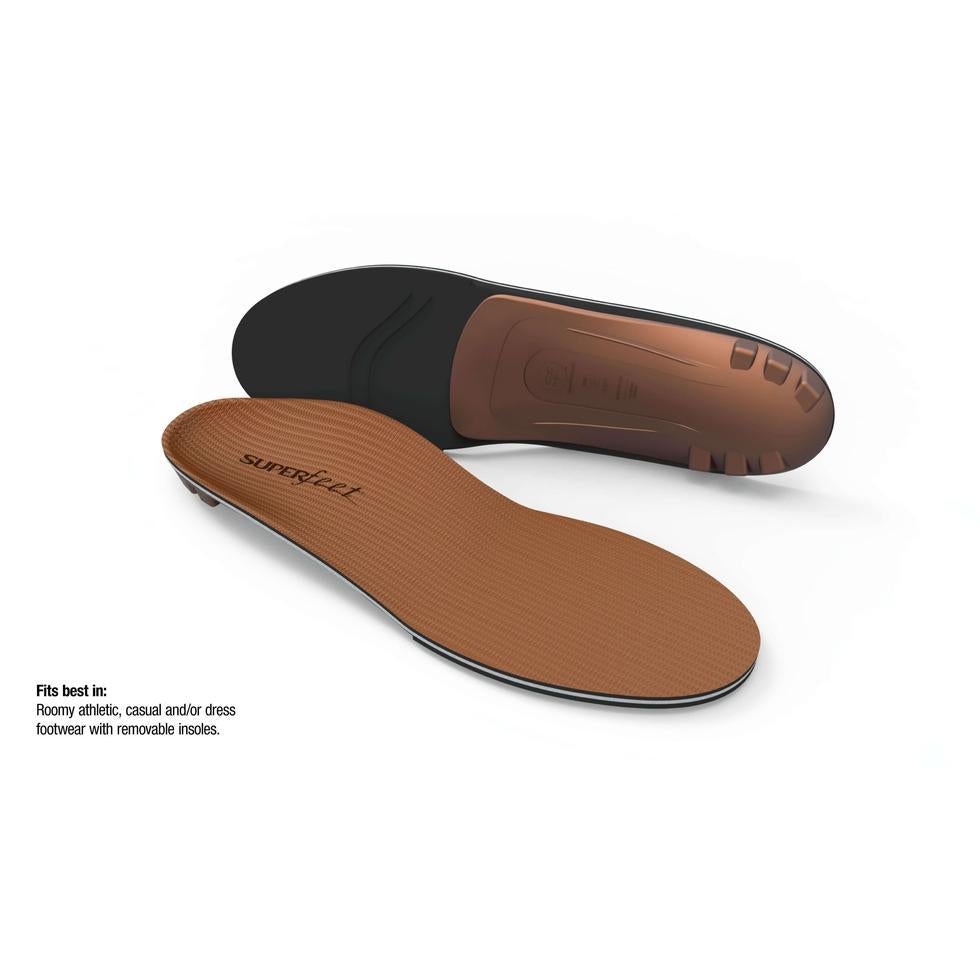 Get an incredible fit that hugs the contours of your feet with Superfeet All-Purpose Memory Foam Support insoles. The pressure-sensitive memory foam cushioning forms to the shape of each foot and combines with stabilizing support for must-have comfort, especially for long hours on your feet. Designed to replace the removable liner in roomy footwear. Trim to fit your shoe size.