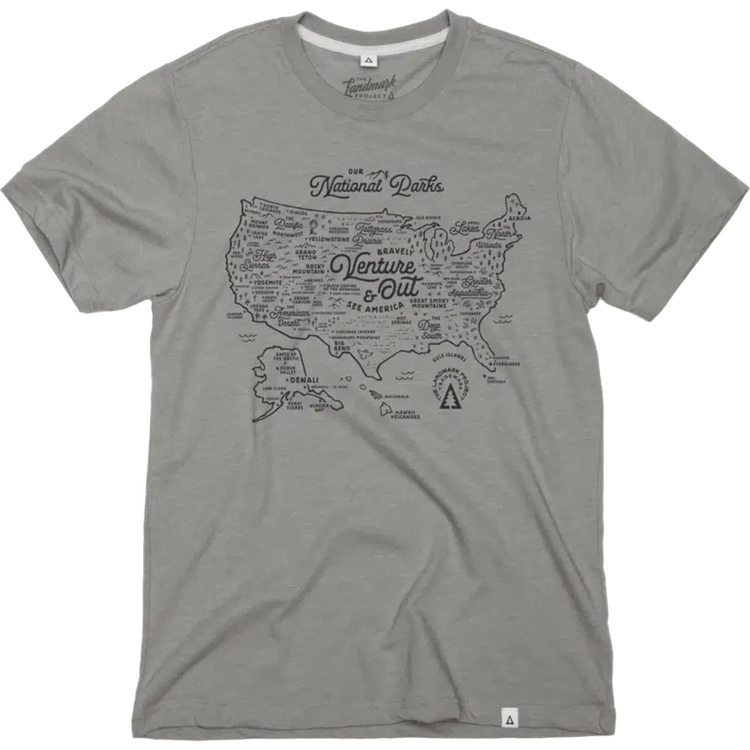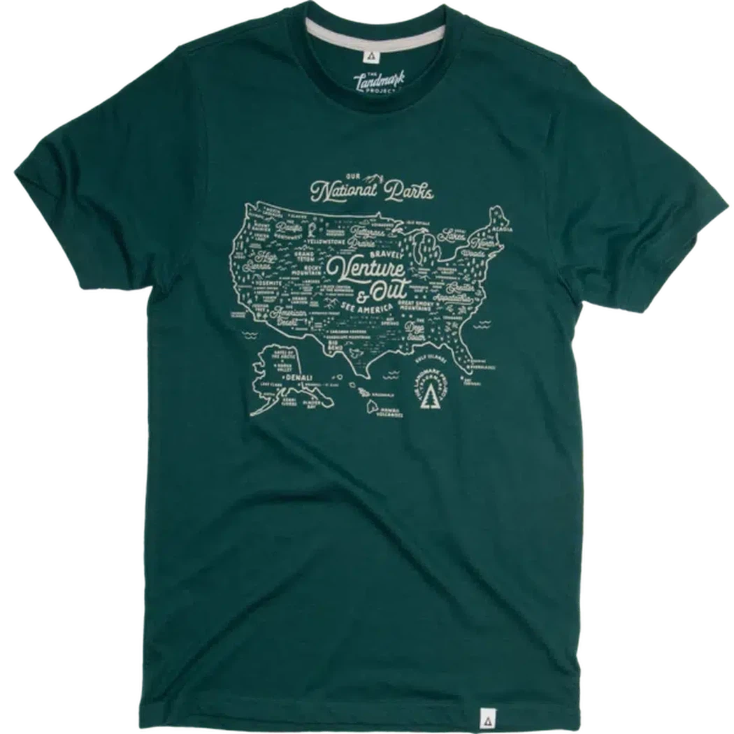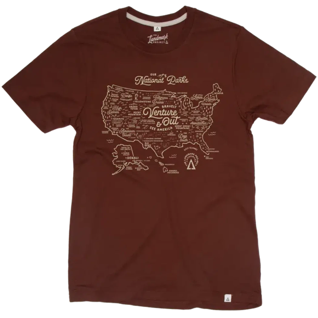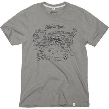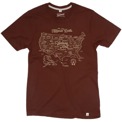 Adventure bravely and see America from sea to shining sea! This tee features a detailed map of America's 63 National Parks. If you're the type to reminisce about past adventures, or if you love planning the next road trip, this tee is for you.