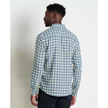 Feel: Soft, lightweight herringbone twill flannel made from post-consumer plastic bottles and salvaged cotton textiles