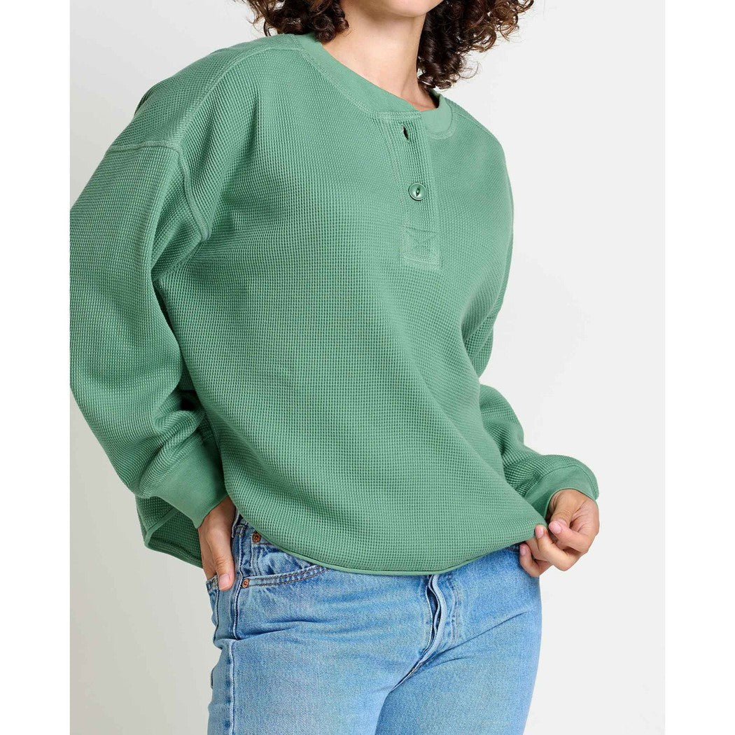 A layer to end all layers, this henley has it all: Soft waffle texture, an oversized button placket and boxy fit for max coziness. Why wear a sweatshirt when you can wear this?