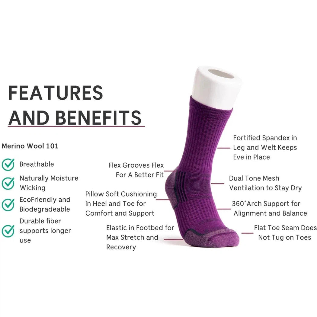 - Compression zones around the arch, ankle, and leg offer support and help the sock stay in place.