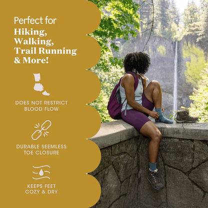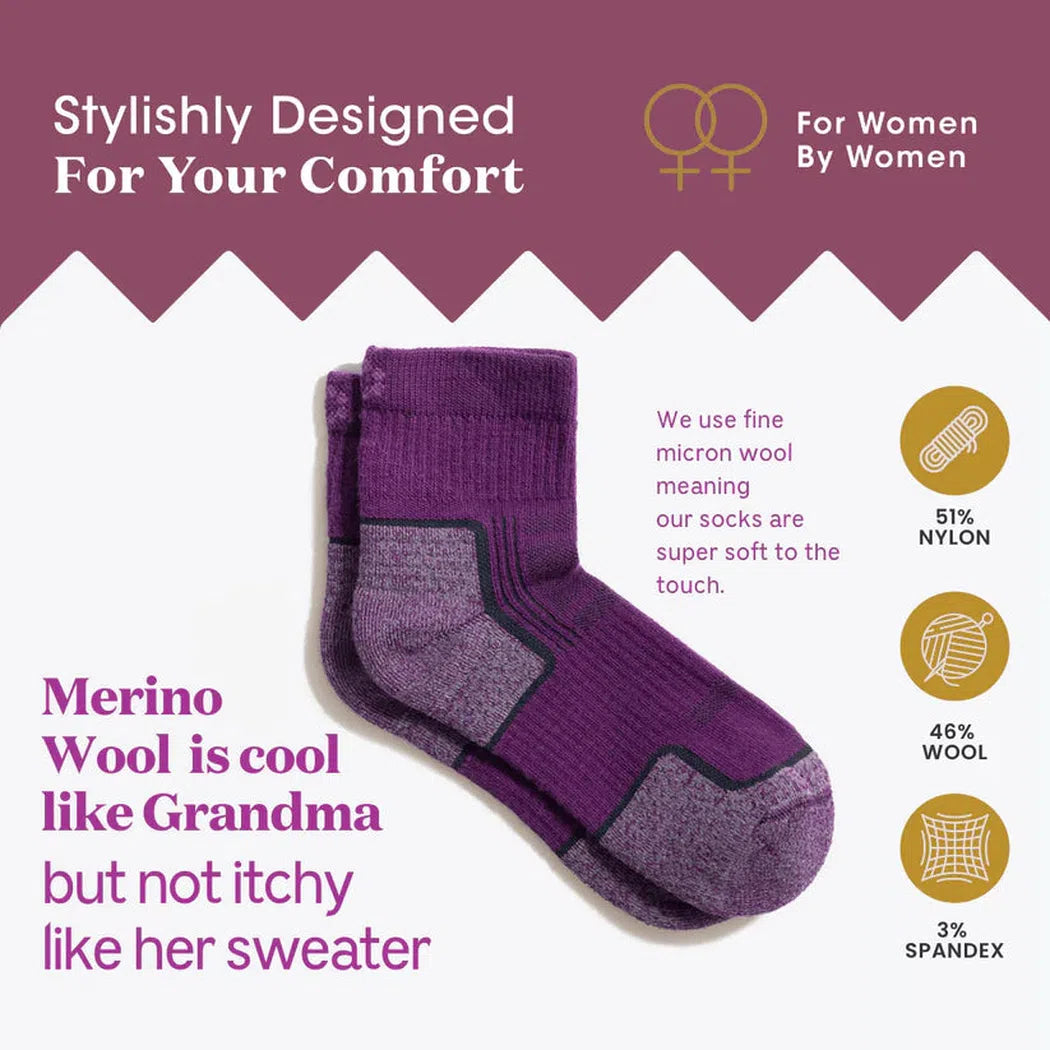 Our feet deserve better than men's socks sized down. That's why we surveyed women to find out what matters most. Our design is great for hiking, running, traveling, camping, biking, and more! As you choose your own adventure, choose comfort too. Feel stronger and go longer in the Eve Lightweight Quarter.