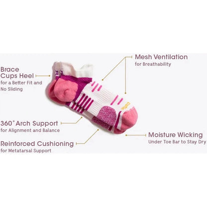 Designed specifically for female runners, the ToughCutie Tia No Show Socks offer the perfect blend of comfort and functionality. These socks provide just the right amount of cushioning without feeling bulky, ensuring a smooth and comfortable run every time.