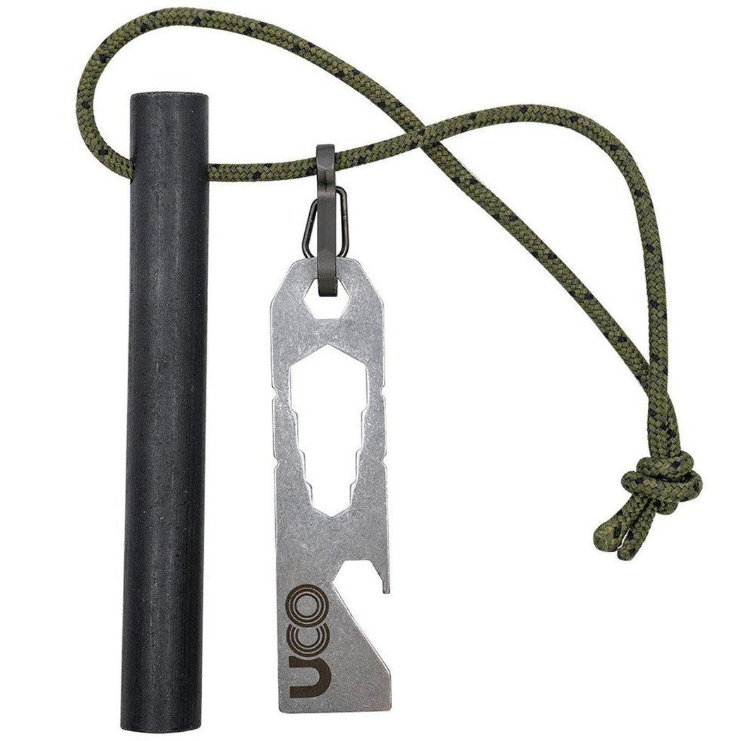 Sparks fly when the UCO Titan Fire Starter is used with its stainless steel striker. This Ferro rod fire starter has many uses and can ignite tinder or be used to light a campfire, gas stove, or gas barbeque. The robust Ferro rod and striker are capable of 20,000 strikes (at 5400 degrees F) in all conditions (at all altitudes and in cold weather).