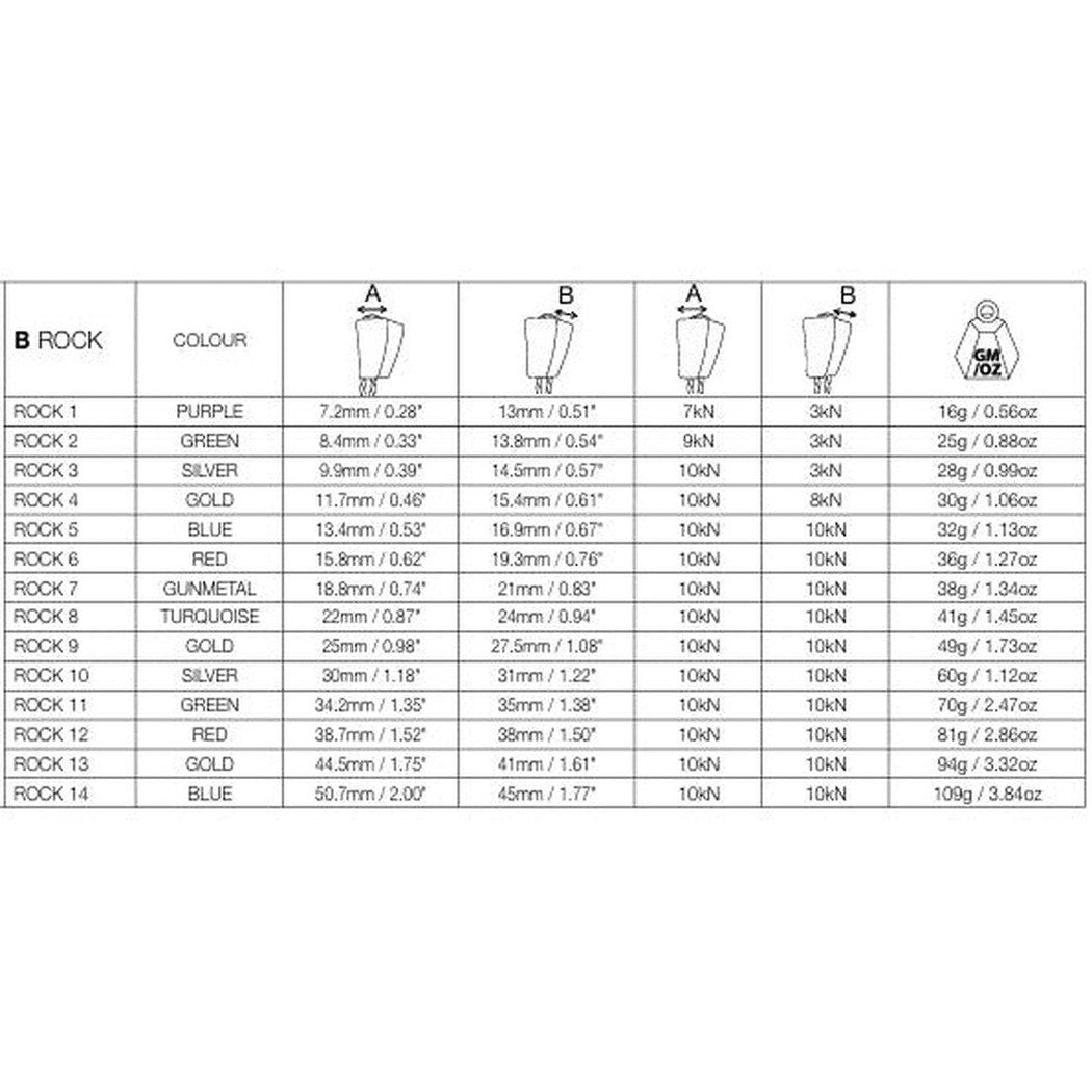 The Rock with its curved sides is a Wild Country original and revolutionised how we protect routes. Still the backbone of any good rack, the current incarnation is considerably more advanced than its predecessor and significantly lighter as well. Keeping the original groundbreaking curve, Rocks now come with thinner, lighter sidewalls, a lateral side taper, anodised heads for quick selection and an extended range - with fourteen sizes in all. Revolutionary when launched and still turning heads, the fully featured Rocks range are the benchmark units for the modern climber.