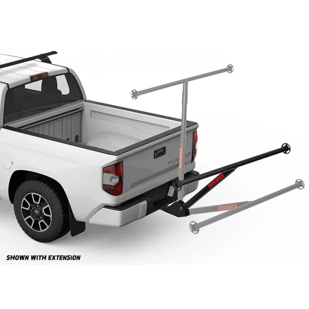 The LongArm truck bed extender easily extends the length of any truck bed up to 4 feet. Light and strong, the aluminum hitch mounted rack is the ideal solution for hauling fishing kayaks, boards, lumber, ladders and more.Adjustable to three distinct load-carrying positions and rated to carry up to 300 pounds in lower positions, the LongArm takes your truck bed to the next level.