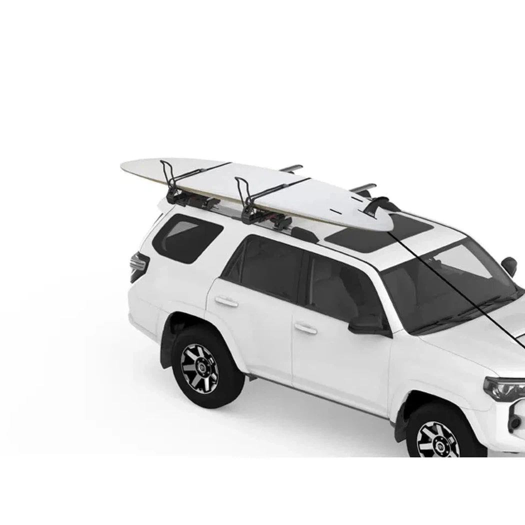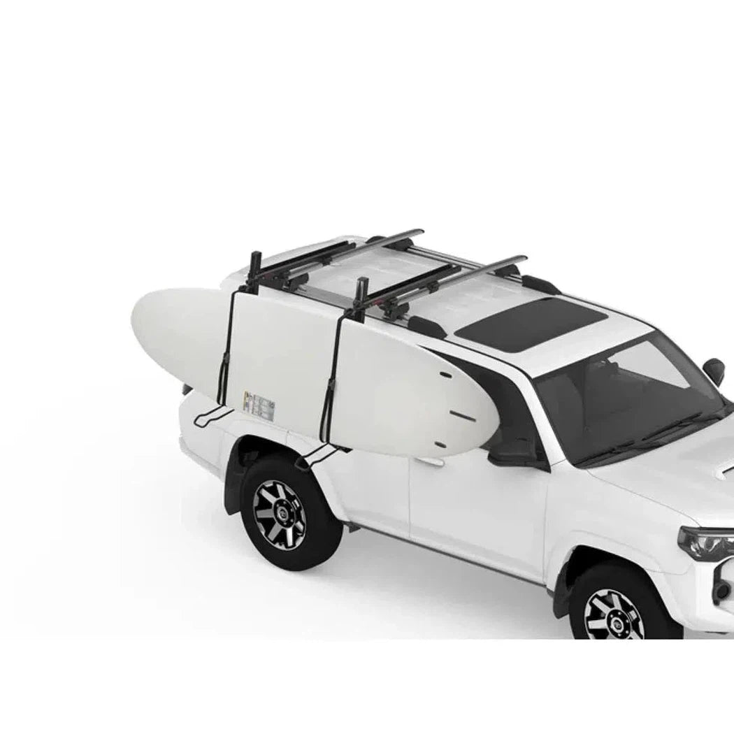 The first load-assist mount to handle both SUPs and kayaks, makes loading and unloading heavy boats and boards a breeze. The lightweight mount tilts down more than two feet from the roof rack, takes on up to 45% of the boat's weight, then helps gently raise it up to the top of the vehicle. Once loaded it securely cradles your boat or boards for the ride. At only 21 lbs. it's super lightweight but built burly enough to wrangle an 80 lb. load.