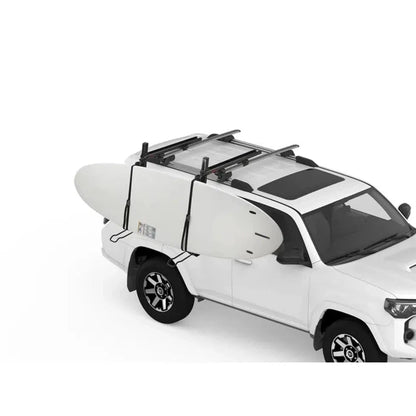 - Easily load and unload kayaks and boards at waist level at the side of the vehicle with the easy to use slide and tilt mechanism